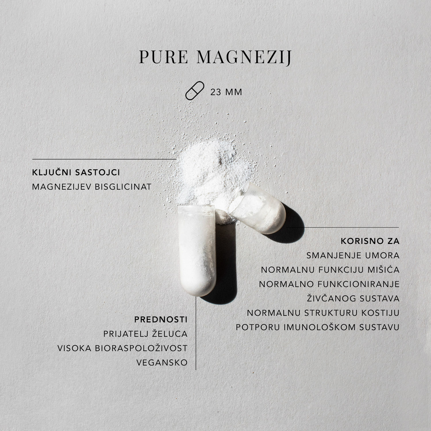 Sastojci:Magnezijev bisglicinat, sredstvo protiv zgrudnjavanja (rižin ekstrakt), biljna kapsula (HPMC).